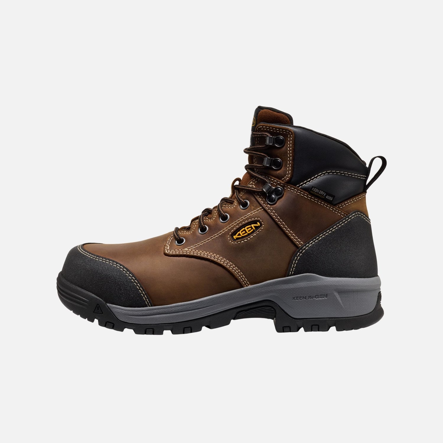 La Evanston 6 pouces a été pensée pour les travailleurs qui exigent à la fois chaleur, sécurité et confort dans les environnements les plus rigoureux. Sa construction en cuir pleine fleur imperméable et sa membrane respirante Keen.Dry gardent les pieds au sec, tandis que l’isolation 400g Keen.Warm assure une protection thermique efficace jusqu’aux conditions hivernales.