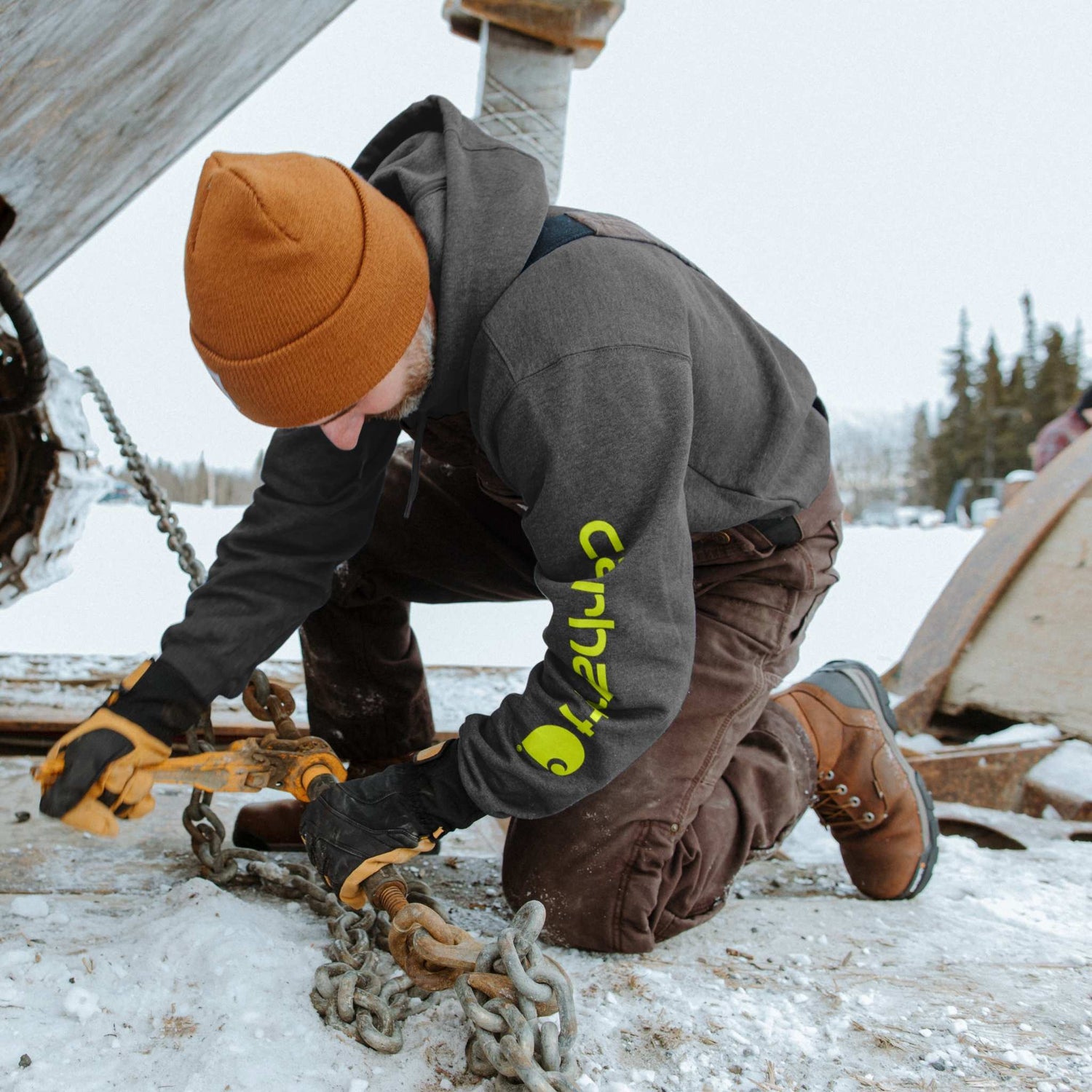 • Poche chauffe-mains & logo manche : garde les mains au chaud et affiche la marque Carhartt